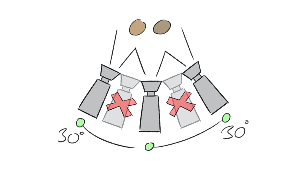 The 30 degree rule applies to multiple shots of the same figure or object. It operates on the idea that two different shots of the same figure or object need to be different enough for the viewer to recognize them as two different shots. If the two shots are too similar, the edit will be a jump cut (see the definition below), and the edit will appear jagged and obtrusive rather than seamless and invisible. If the two shots are significantly different, the audience will easily recognize the second shot as a different view of the same figure or object. To make sure this happens, the positions of the two shots should be at least 30 degrees apart from each other (along the 180 degree arc described above). See the image below from “BSL Sign for 30 Degree Rule”: