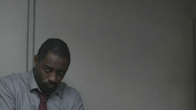 Sharman discusses negative space, but it may be helpful to have an example. Negative space refers to the use of empty space within the framing of a shot, often (but not always) used to create a compositional imbalance. Check out this frame from the BBC series Luther: