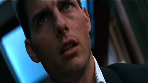 In addition, consider level. The vast majority of the time, the level of the camera is true to horizon. A canted angle (sometimes called a Dutch tilt) means that the camera has been tilted to one side of the other. Here is a Dutch tilt from DePalma’s Mission Impossible. Note how the character’s face is not level with the frame: